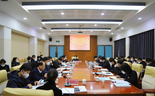 为深入学习贯彻习近平新时代中国特色社会主义思想,认真落实党的二十大精神,树立大抓基层鲜明导向,进一步督促各级党组织书记认真履职尽责,1月10日上午,市委教育工委召开2022年度党组织书记抓基层党建工作述职评议考核会议。市委教育工委书记,市教育局党组书记、局长李捷轩主持会议。市委组织部组织三科副科长杨策、科员李明泽到会指导。