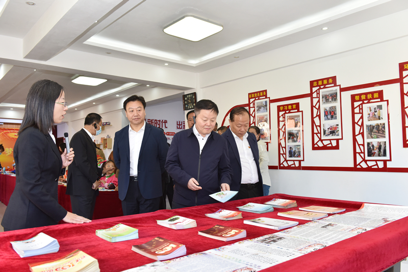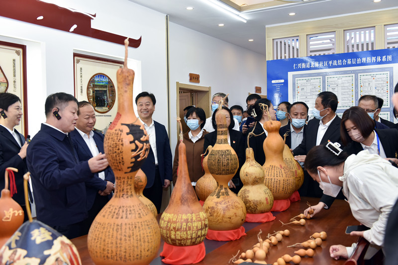 与会领导听取喜嘉喜婚俗文化博物馆情况介绍